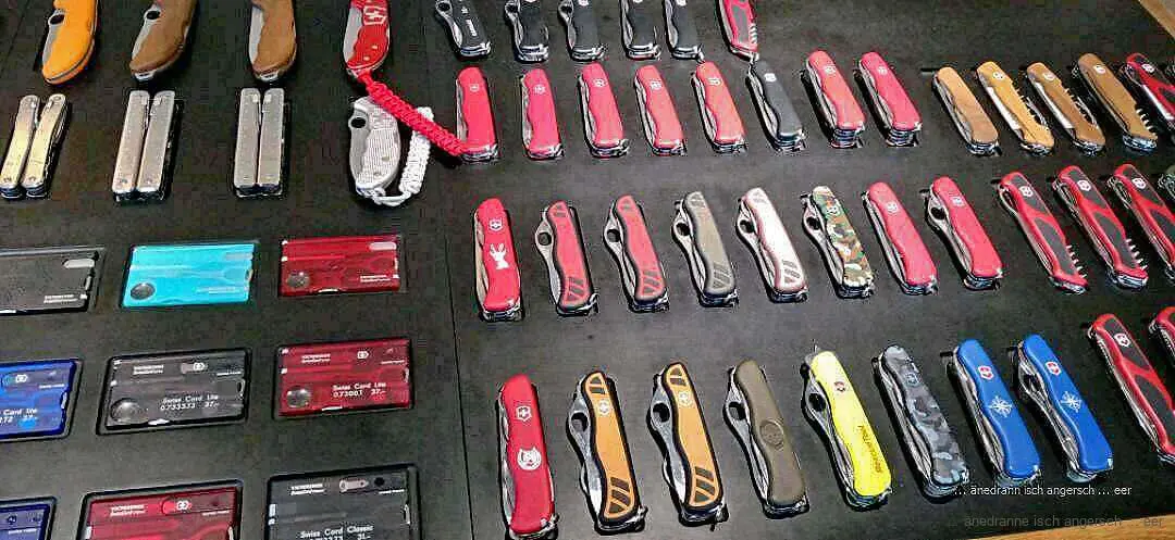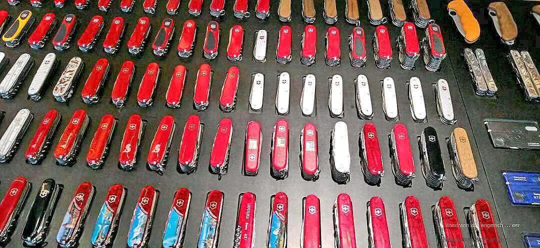 Guet, auso, – Ibach: zersch muess i i d Victorinox. Das wird öppe aus touristisches Highlight g’rüehmt. Isch aber eigetli nume e Mässerlilade, – tüecht mi. Guet, soviu Sackmässer ha n i äuä no nie g’seh – u es het o viu Sondermodäu, Chuchimässer u Jagdhegle. Aber, der einzig Zwäck isch hie Umsatz. – Ja u de hiufe ne no, dä z vergrössere …