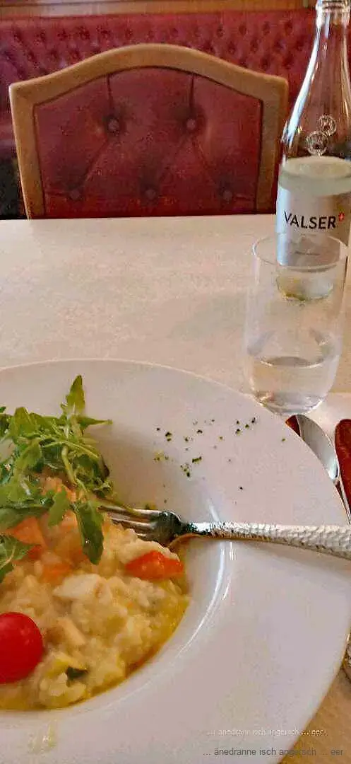 Nu guet, itz bi n i da: HAUG Confiserie Café Restaurant u isse ds Zmittag. Es het nid so viu Lüt, ds G’müesrisotto isch guet g’si u n i ha Zyt, mer der Vormittag dür e Chopf lah z gah.