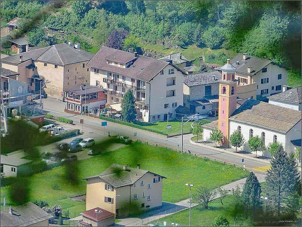 O d Albergo Lardi g’seh n i, g’rad näb der Chiuche.