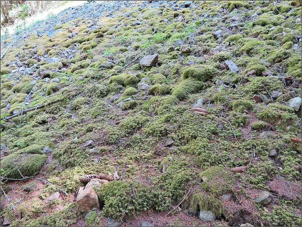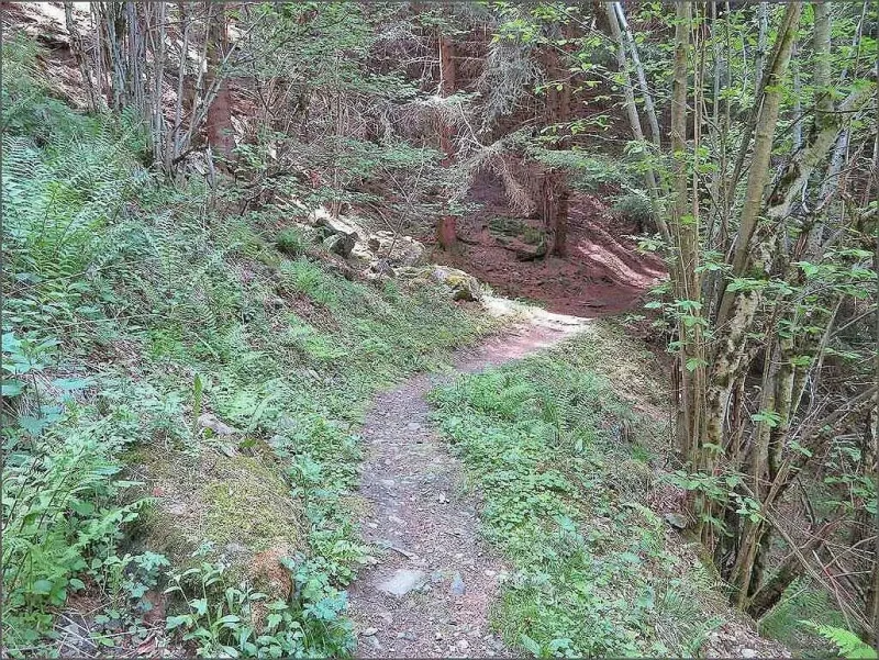 Mi Charte füehrt mi streckewys uf Abschnitte, wo nümm hüfig begange wärde. Dert isch fasch zueg’wachse, me chunnt fasch nümm düre. U überau het es Tannzäpfe, hüfewys! Hinger mir isch e wunderbari Ussicht, vor mir e Bärg.