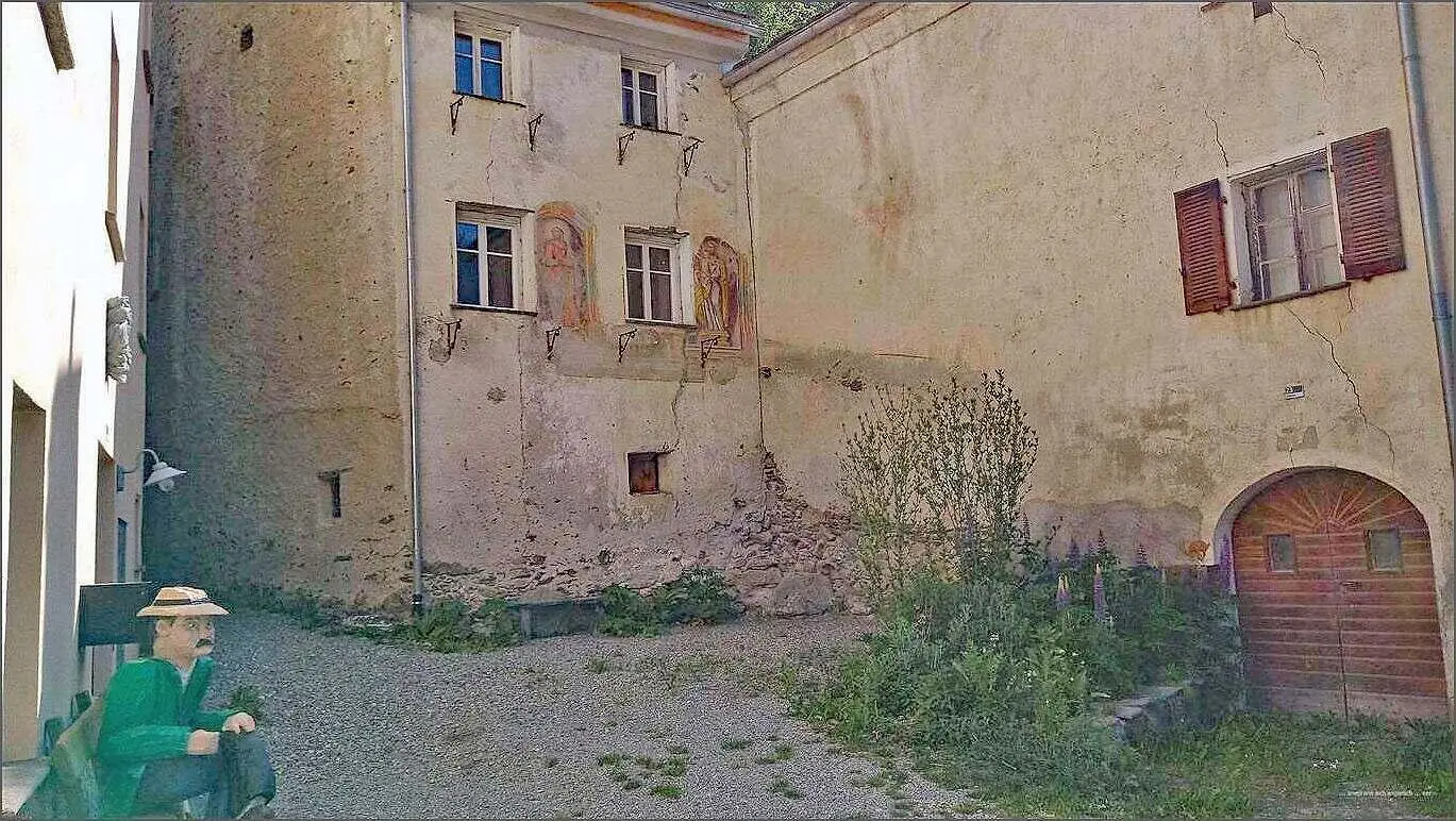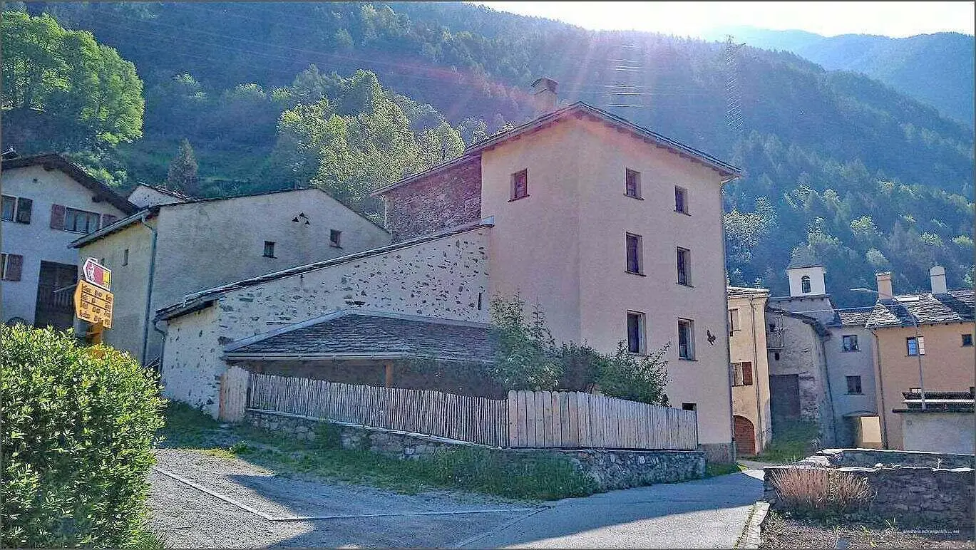 Nach Le Prese bi n i g’ly ds Cantone. E par Hüser u n e Kapälle, äng u verwinklet. D Lüt hei früecher necher bi ne nang wöue läbe. Hüt si die Hüser äuä ehnder e Fluech. Aber es wird renoviert u umb’boue. O d Kapälle isch dranne, nid bruchbar für Glöibegi, – voll mit Boug’rüscht.