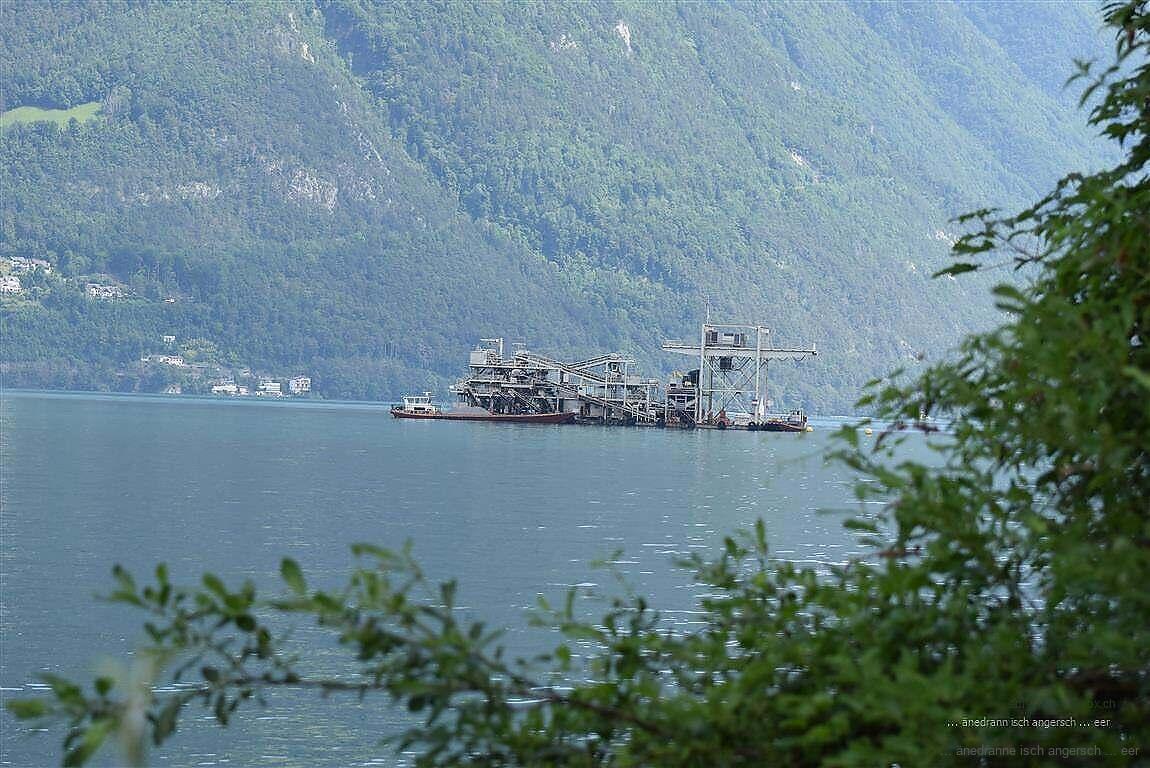 I loufe itz fasch em Wasser nah. Churz vor em Rislete Schluchtigang het ds Chiswärch e grosse Picnicplatz boue. E paar hundert Meter im See use boue die Chis us em Seegrund ab. Hie begägne n i o wieder däm Laschteschiff, wo n i ds Beckeried mit em Käpten g’redt ha. Är het mer g’jammeret, es wärdi zweni b’boue u er heig zweni Büez.
