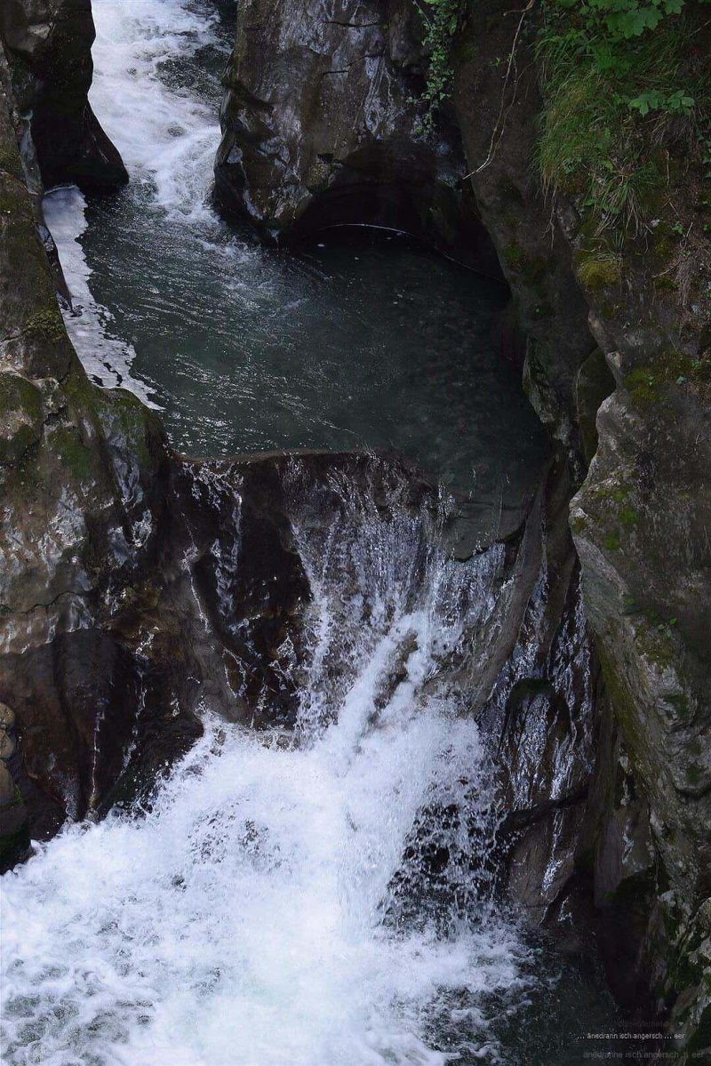 So itz faht der Ärnscht vom Mittwuch a! Es geit obsi! Der Wäg dür die Schlucht isch usboue, aber eidürig nid für miner churze Bei. Mängisch muess i bi dene Stägetritte meh als e halbe Meter ungereinisch überwinde. Für d Stägebouerehr z rette muess me aber no erwähne dass der Räge die Tritte o no gäng chley formt.