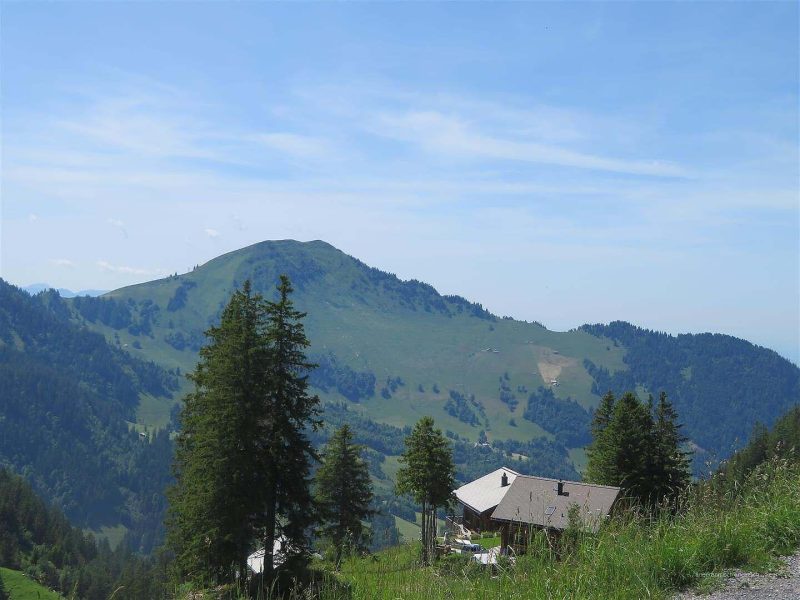 Scho so um die eine bi n i bi der Lochhütte. Mi düecht, i mög rächt guet loufe. Drum gah ni nid i Richtig Stockhütte füre. I loufe uf d Klewenalp. Zwüsche Heitibüehl u Klewestock geit es dür nes Täli u dernah uf ds Tannbüehl ueche.