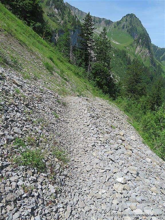 Hie füehrt o der Wildbeobachtigswäg düre. Aber so, em Vormittag, si d Gämsi, d Steiböck, d Murmeli und Co irgendwo versteckt u n i chume z spät. Aber das macht nüt, i bi ja nid wäg dene da.