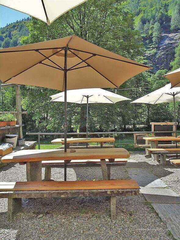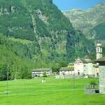 Wo n ig hüt em Vormittag bi mit em Poschi a cho (wieder e Superverbindig) bi n i zersch dür ds Dörfli Sonogno g’loffe. Supertouristisch, die meischte Hüser si umg’wandelt i Wucheänd- u Feriehüser! Es het es riesigs Geböide, wo als Feriecamp a g’schribe isch. O der Camping isch nid g’rad chli. Ei Buur ha n i g’seh. Dä het äuä Gäld verdienet, – ömu de Maschine nah.
