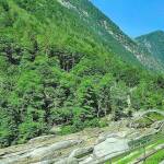 Nach em Mittag isch de irgendwie gar nid so schlimm. Ds Rudel het sech usenagg’loffe. I chume zügig vorwärts. Mal abe, mal ufe, aber so isch das ja im Läbe. Der Wäg isch meischtens rächt guet, – steinig äbe. I loufe meischtens im Wald, rächts oder links vo der Vercasca. Das Wasser u siner Farbe fasziniert: blau, türkis, grüen u drüber die wiissi Gischt. Mal bi n i ganz am Wasser, de wlieder hundert Meter wäg, – aber g’höre tuet me’s fasch gäng. O ds Bachbett isch es Gedicht. Die Steine, oder besser Felse, hei all Farbe. Viel si isehaltig u drum roschtrot. Das git e tolle Kontrascht zur Farb vom Wasser.