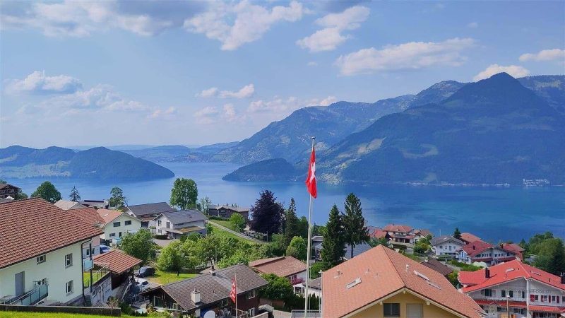 Gäge Luzärn zue wird es waldiger, – aber no so schön. Es wird allethalbe b’boue. Drum chöme mer mitf füf Minute Verspätig a u ds Umstige wird de chley äng. Aber es längt u i schoukle mit der Zätralbahn i Richtig Stans.
