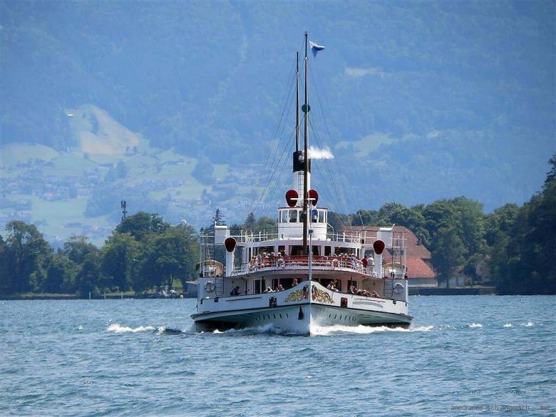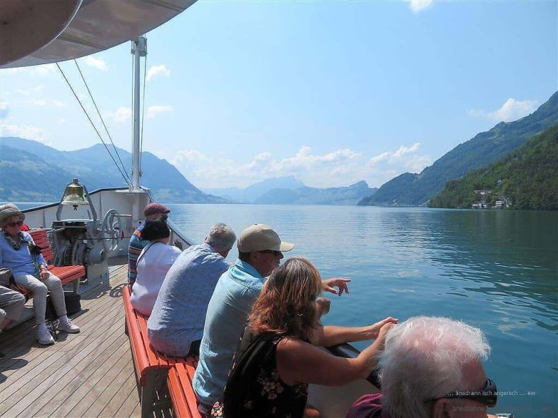 D Fahrt uf em See isch ungerhaltsam, s het gaamz viel Alti, chley weniger Jungi uf der Schuelreis u paar Mittelalterlegi wo schaffe. 😉. (luege, lose, amüsiere)