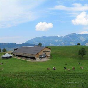 Mi Wäg geit wieder im oder am Wald nah gäge Buochs. Ds Obersassi isch e Grossbuur. I dänke, dä het o e grossteil vom Land hie obe. Läck het dä e Stall b’boue. Dä isch äuä guet ungerstützt worde. Aber er isch nid allei. Je wyter ig gäge Ort ache chume, desto grösser si d Höf: Milch u Fleisch – Grossproduzänte. Zwüsche dene u Buochs verlouft no d Outobahn. O nid es Glanzprojekt, – aber es het äuä Gäld b’bracht.
