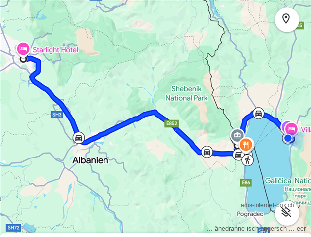 Die hütegi Fahrt geit vo Tirana wäg a Ohridsee übere. D Busfahrt füehrt dür ängi Klus-ähnlechi Täler. D Strass, die alti, stillg’leiti Isebahnlinie u der Fluss ‚Shkumbini‘ teile sech der Platz. Zitewys stöh o no Strommaschte. Itz wird no e zwöispuregi Outobahn b’boue u das ziemli rigoros (um nid z säge rücksichtslos). D Isebahnlinie söll de o irgendeinisch nöi g’macht wärde…