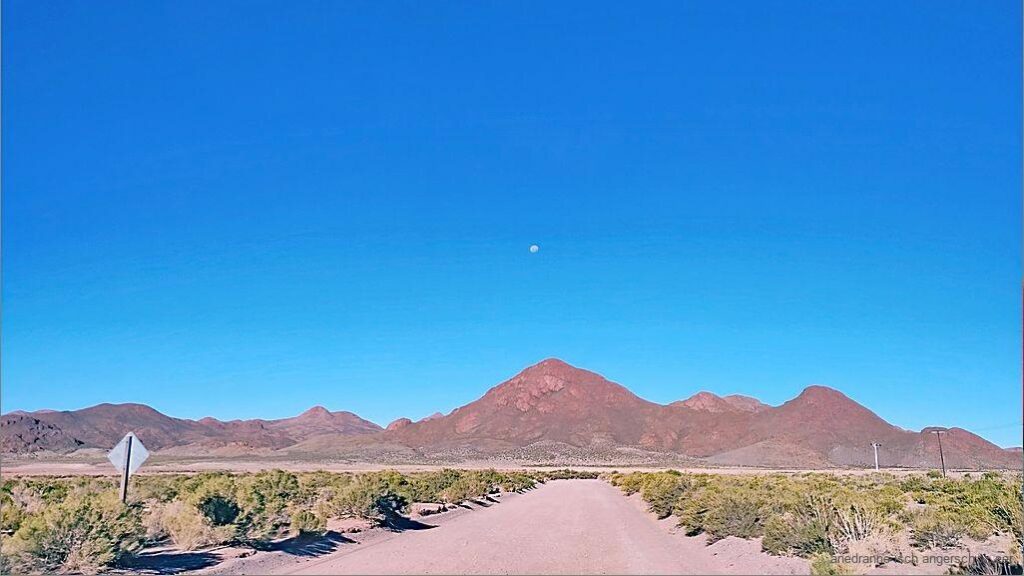 Mit de Bärge het ds Kamel veiechli z kämpfe. Zytewys si mer fasch uf der Höchi vom Mont Blanc. Nachdäm mer der chilenisch-bolivianisch Gränzübergang erreicht hei, geit es de no lang dür grossi Hochäbene. D Strass da düre isch sehr guet usb’boue u teeret u mer chöme schnäll vorwärts. Daderby überquere mer o der Paso de Jama.