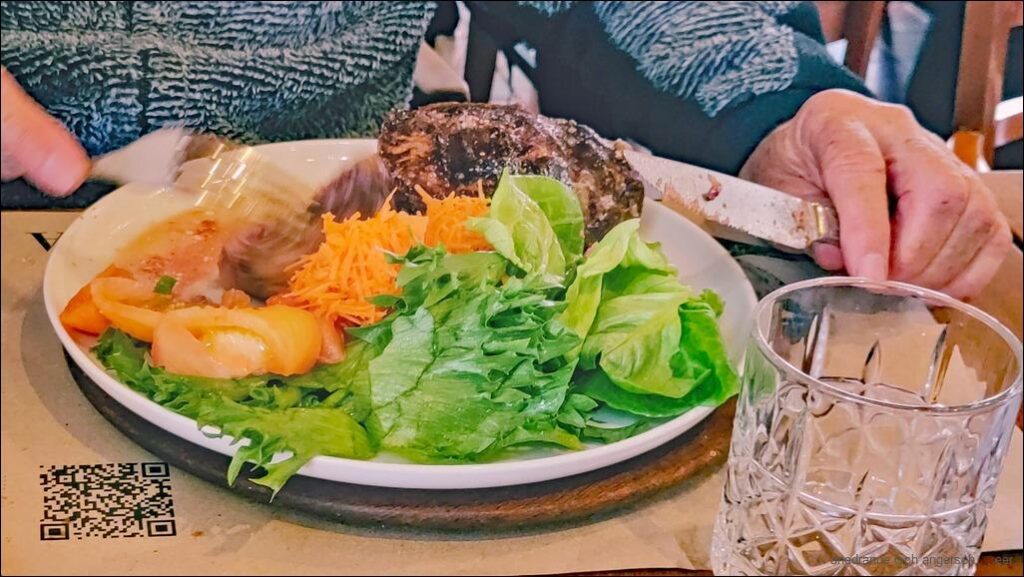 Dür ne fründlegi Frou i re Konditorei vernäh mer, dass ds Cafe de la Patria offe heig u me dert chönn ässe. Mer göh häre u ässe vorzüglech, – ömu ig. Heinze muess mit der argentinische Grössi vo sim Fleischbitz kämpfe, aber i gloube es isch o guet.