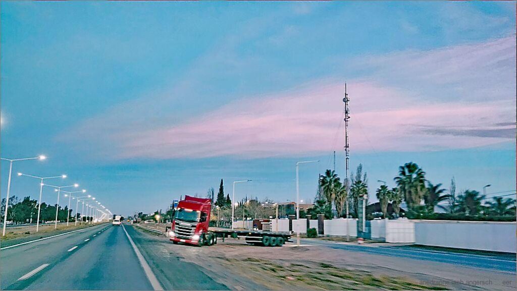 Hüt isch der Tag vo Mendoza. Heinze het e Termin für ds Kamel lah z schmiere u ig wott de no chley i der Stadt ume schlürme. – Mer föh der Tag wie gäng mit zmörgele a. I lege de no e Rundi düschele i u so gäge Mittag zue fahre mer i die ‚grossi‘ Stadt. Mendoza isch würkli goss. Scho gly nach Palmira föh die erschte Industrieboute a. U de wärde d Geböide gäng wie hüfiger. Ds Gebiet zwüsche Palmira u Mendoza isch praktisch zueb’boue. Palmira g’hört de aber scho zum Kreis San Martin u nid zu Mendoza. Mer farte über d Outobahn u si ziemli tifig dert. D Garage, wo Heinze e Termin het, isch im Zäntrum. Ds Outo eifach am Strasserand abstelle u wäg gah, wär ziemli fahrlässig. Z liecht würd es ufb’broche u g’chlauet, was me chönnt bruche. Mer stelle ds Kamel, wenn mügli, uf ne bewachte Parkplatz. Vo dene het es in Mendoza vieli. Da mer vor däm ‚Schmiertermin‘ no wei ga ässe, löh mer o hüt ds Kamel uf so me Parkplatz.