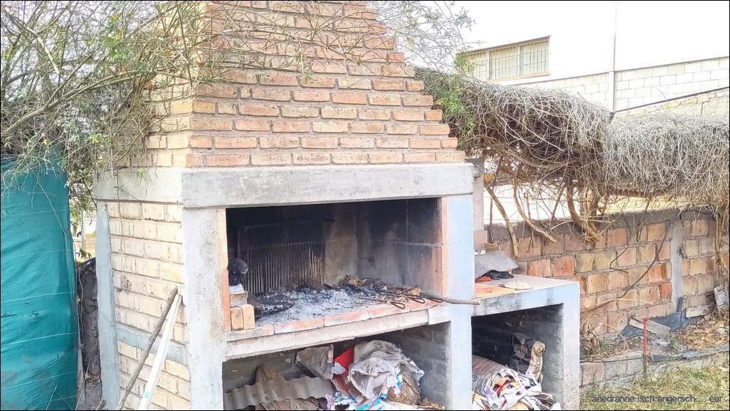 I nime mer no einisch Zyt zum düschele u dernah probier i no n es Mal, i mire Täsche Ornig z mache. Irgendeinisch düecht mi, es wär schön, no chley z pfüsele. I richte mi uf em Bett i u – wusch, bi n i wäg! Am Nami, halbi zwöi, chlopfet’s u Heinze rüeft. Wo n i de i d Chuchi chume, si die drü Argentinier u Heinze scho voll am Ässe u Trinke. Der Valentin het e Tischgrill ufg’stellt, si brätle Fleisch u für mi het er vegetareschi Empanadas g’macht. (Zum Glück isch er mal Beck g’sy.)
