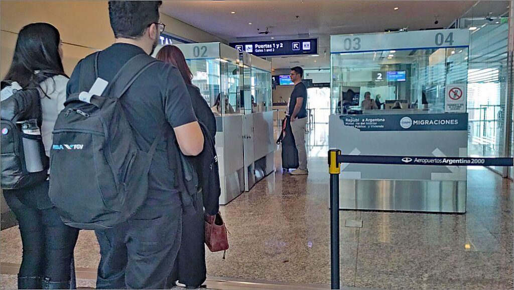 De chunnt der Sicherheitscheck u drufabe d Passkontrolle. Es geit familiär zue im Flughafe in Mendoza.
