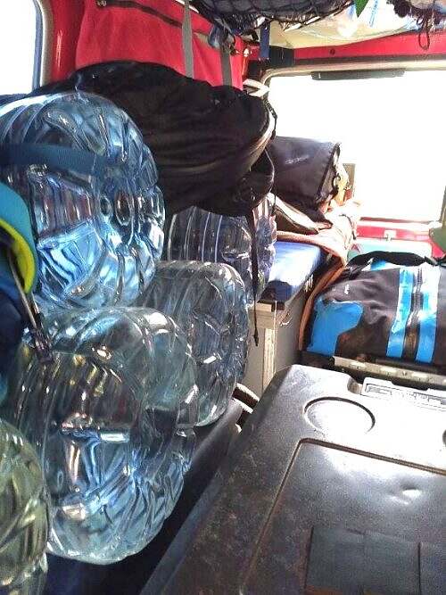 Sonntagmorgen, wir stehen fast um fünf auf, packen auf dem Zeltplatz zusammen und fahren zum Einkaufen nach Wiluna. Gestern war der Tag des Frustes, heute wollen wir Erfolg haben. Tanken können wir mit unseren Master und Visa immer noch nicht. Ein lieber Mitmensch lässt uns aber mit seiner Karte tanken und wir bezahlen ihn dafür in bar. Im Laden ist recht viel los und wir sind erstaunt, was es da alles gibt. Um neun Uhr haben wir dem Kamel über siebzig Kilo Wasser ‚auf den Rücken gebunden‘. Wir staunen aber, was wir dafür blechen müssen. Selbst die Einheimischen machen uns darauf aufmerksam, dass dies eben der einzige Laden im Ort sei. Und einen Kassenzettel sollen wir auch verlangen… 😉 Trotzdem, wir können fast alles einkaufen und verlassen Wiluna.