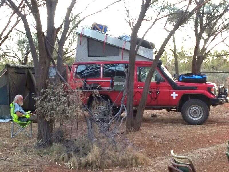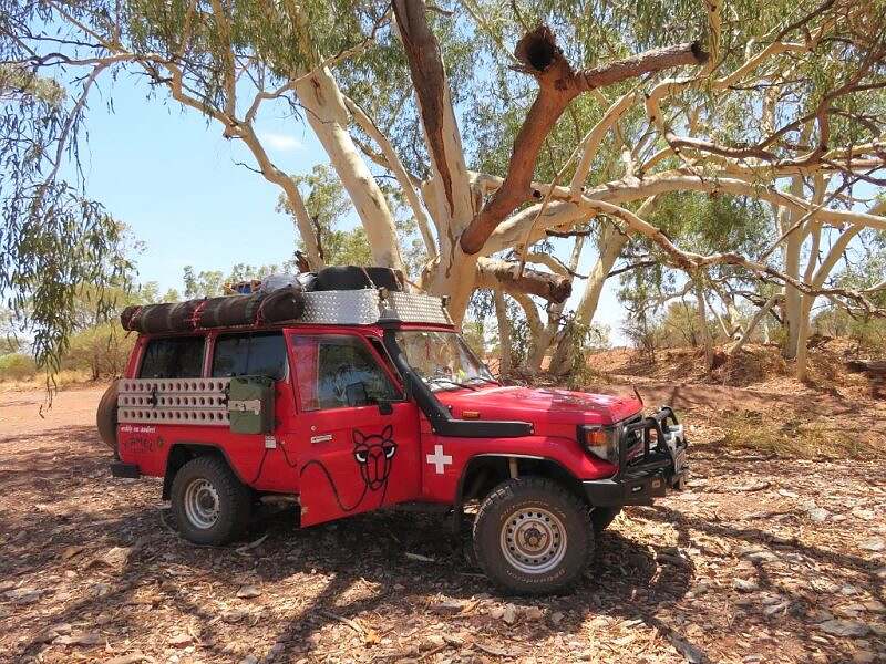 Fast um zwölf Uhr kochen wir in einem ausgetrockneten Flussbett eine Nudelsuppe und geniessen das Leben. Wunderschöne Gumtrees spenden uns Schatten. Je weiter wir am Nachmittag fahren, desto unterschiedlichere Vegetationen treffen wir an. Wüste ist nicht Wüste und nur wenige Stellen hier entsprechen einer Sandwüste. Kurz vor unserem Tagesziel, der Carnegie Station, braut sich ein Gewitter zusammen und es regnet erstmals etwas. Also dann, – auch morgen fahren wir weiter und berichten später.
