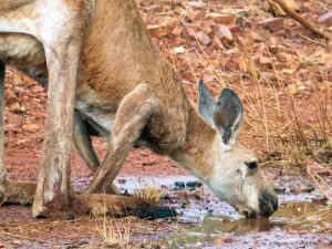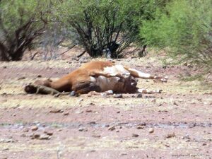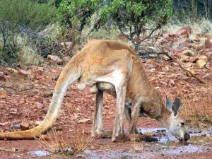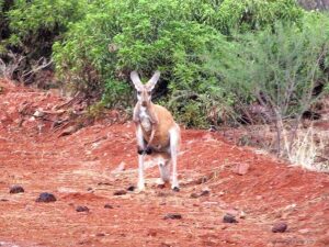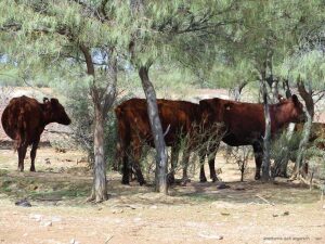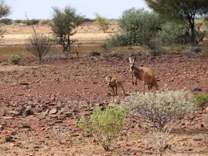 Von nun an fahren wir Richtung Osten, dem Zentrum von australien. Ich lerne das erste Mal eine richtige Wüste kennen und freue mich darauf. Gleichzeitig wird es für uns immer schwieriger, einen Internetzugang zu finden. Nach der Gunbarrel Road werden wir von unseren Erlebnissen berichten können und uns wieder regelmässig melden. Doch nun zurück zum heutigen Tag. Auf dem ersten Teil des Gunbarrel sind tadellose Pistenverhältnisse anzutreffen. Den ganzen Tag treffen wir Viehherden an, die in dieser Wüsten-Buschlandschaft grasen. Ausserdem wimmelt und hüpft es von Kängurus, die wir aus ihren Schattenplätzen aufscheuchen.