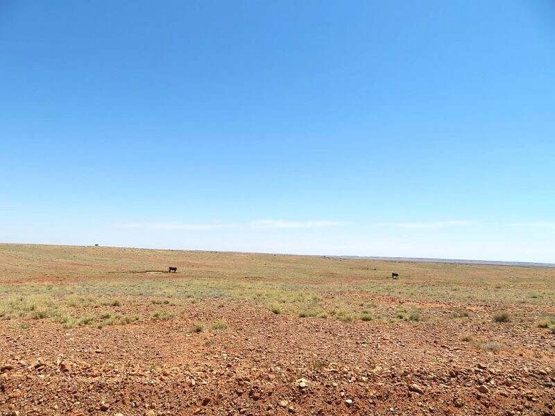 Die Weiterfahrt am Nachmittag führt durch endlose Weiten. Die Büsche werden weniger, dafür sieht man immer etwa Rinder in den Ebenen. Ein hartes Kuhleben.