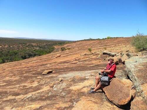 Das letzte Stück der Strecke führte durch Aboriginal-Gebiet. Wir erklimmen den Warrdagga und werden mit einem einzigartigen Weitblick belohnt. Ich sehe meine ersten Kängurus, bin hin und weg von der Landschaft und den Pflanzen, und der Berg hat es mir auch angetan. Auf dem Rückweg zu Mr. Bell, wir müssen uns bei ihm wieder zurückmelden, besuchen wir noch einen ausgetrockneten Salzsee.