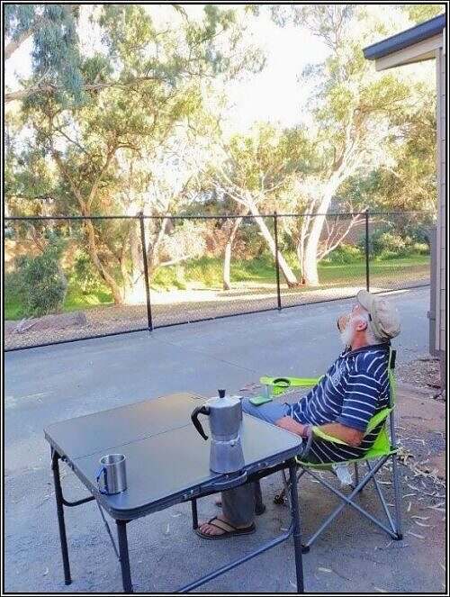 Inzwischen hat die Temperatur ziemlich zugelegt und beträgt 42 Grad. Wir schwitzen! Das Kamel bleibt auf einem Parkplatz und wir gehen zu Fuss zum Chinese Food Court. Irgendwie habe ich erwartet, dass mehr Menschen in der Stadt wären. Heute ist ein australischer Feiertag und das wäre doch ein Grund, in die Stadt zu gehen. Es hat Leute, einfach nicht besonders viele. Nach einem Bummel und einem Einkauf fahren wir zu unserem Caravan Park. Im Windsor Gardens haben wir uns einquartiert und hoffen auf eine nicht zu kühle Nacht.