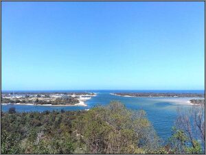 In Nova Nova gibt es einen Kafi und eine Toilette. Die kommen uns gerade recht. Die warme Sonne tut auch gut. Wir fahren gar nicht viel weiter und schon ist Mittagszeit. In Lake Enterance geniessen wir im Lakes Sports & Community Club ein gutes und nahrhaftes Mittagessen, chinesisch 😋. Wir halten beim Weiterfahren am Lookout von Lake Enterance. Eine wunderbare Aussicht gibt es da. Wir fotografieren und versuchen, uns auf Schautafeln zu orientieren.