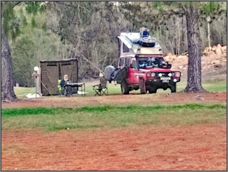 Halb sieben, der Himmel ist bedeckt, erste Lastwagen fahren, den Strassenlärm hörte man die ganze Nacht. Null neun, das Ärgernis-Nieseln setzt ein für nur einige Minuten. Es reicht, zum Anfeuchten. 😒 Der Camper Place war gut. Gestern lernten wir Christian kennen, einen jungen Informatiker, der auch im Carpark übernachtete. Wir sassen zusammen und plauderten, als eine junge Brown Snake unter dem Stuhl durchkroch. Aufregung!