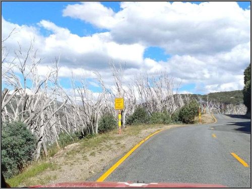 Von Beechworth über Myrtleford nach Bright führt der Weg nach Mt. Beauty in den Alpine National Park. Es ist eine faszinierende Gegend, viele Gräben, Runsen und Hügel prägen sie. Bei Falls Creek fahren wir vorbei und umrunden einen wunderschönen Gebirgssee. Entlang der grossen Wanderrouten wurden schon vor langer Zeit kleine Rasthütten errichtet. In die Behausung Cope Hut hat sich Heinze etwas verguckt und will da übernachten.