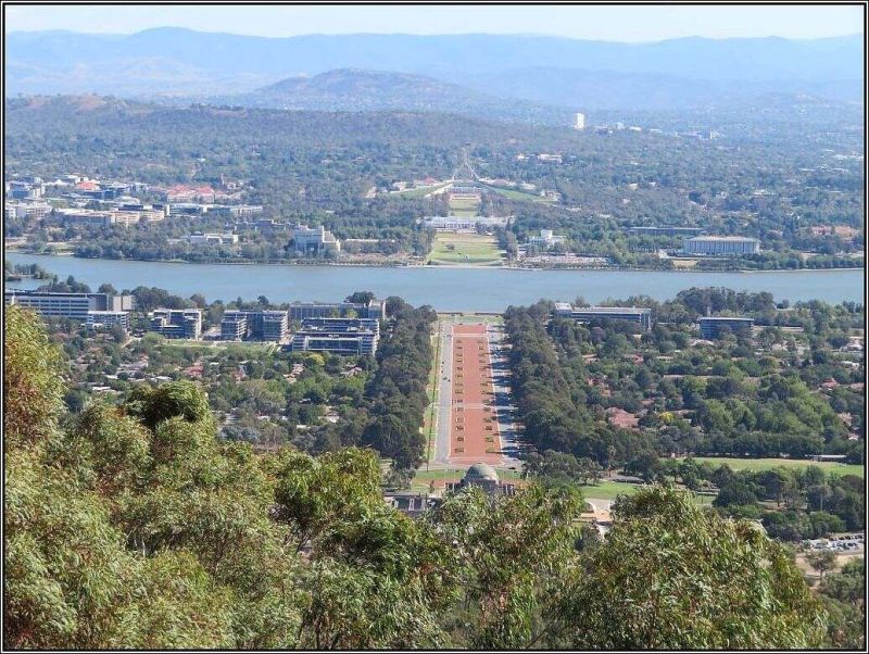 In Canberra kommen wir um halb vier Uhr an. Die willentlich geplante und gebaute Hauptstadt ist nicht sehr gross. Hier wird verwaltet und regiert, daher ist auch alles darauf ausgerichtet. Auf dem Mt. Ainslie, dem 846 Meter hohen Hausberg haben wir den besten Überblick über die Bauten.