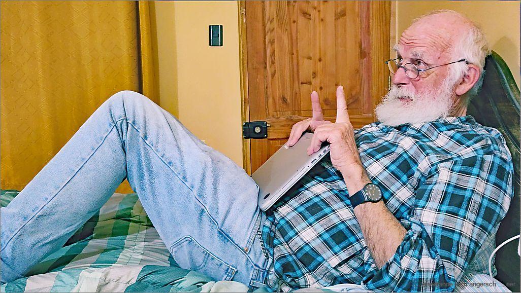 Der ‚Ein Wort Mensch‘ meint: .»Heitze!» Es geit de no bis am nüni, de si beid us de Fädere. Düschele u so, de chunnt zmörgele u so, nachhär ruumt Heinz ds Kamel uf. I grüble im Internet ume wäg mire Chopflampe.