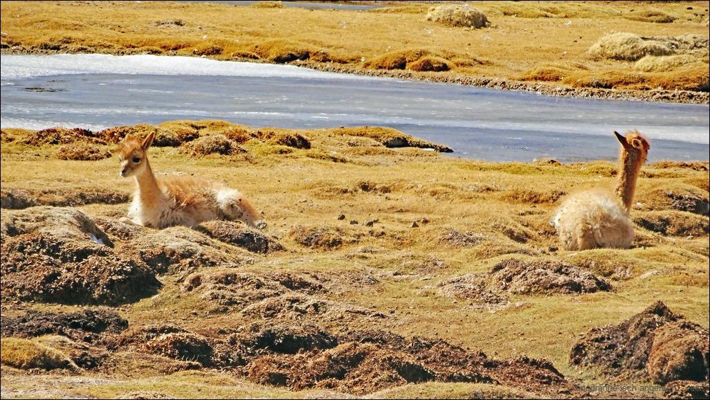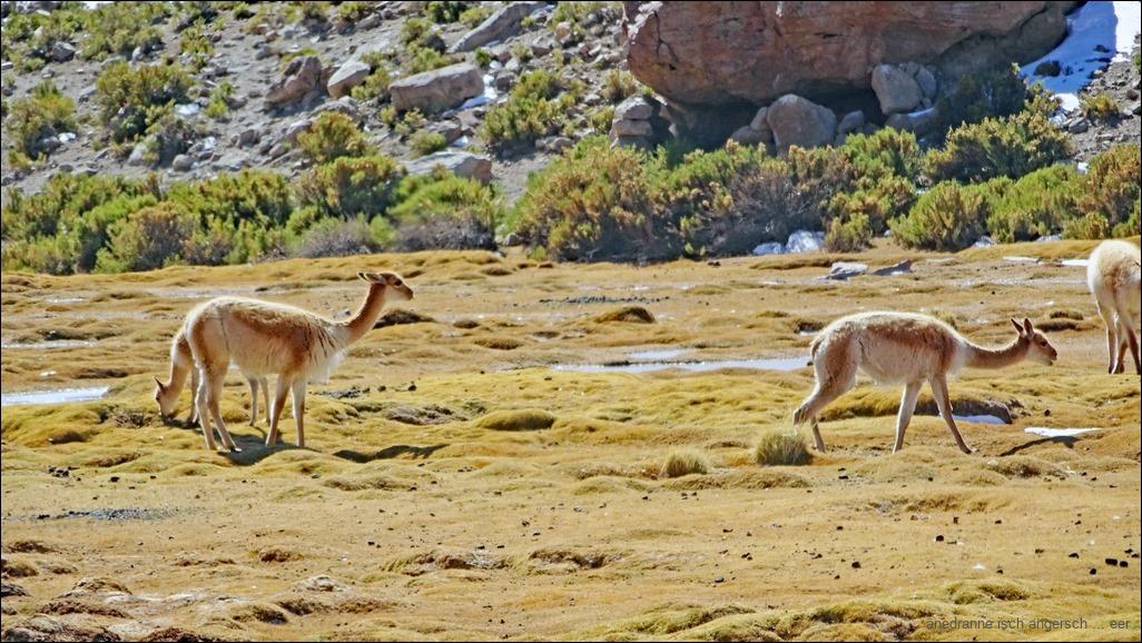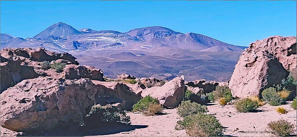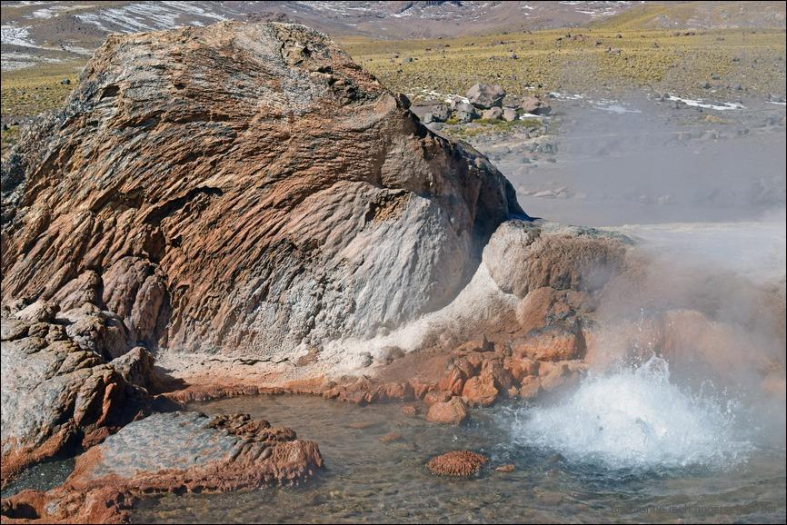Also, mer zmörgele: aber de müesse mer los. Üses Ziel hüt isc h ds Geysirfäld vom Vulkan Tatio. Das isch zwar esrächts Stücki z fahre, aber üs interressiert das Vulkänliwäse. Zum Glück isch d Landschaft so interressant, dass der Wäg weniger e Rolle spielt. D Sicht uf d Vulkanchötti gäge Bolivie isch imposant. Es git Chegle, wo genau eme Vesuv entspräche, angeri si explodieet, oder hei der Spitz verlore. Es git aktivi Vulkane u angeri si scho sider Jahrhunderte tod. Heinze vermisst bi dene d Röichli schmärzlech. 😛