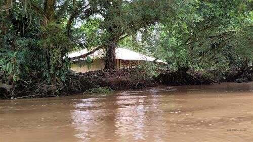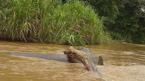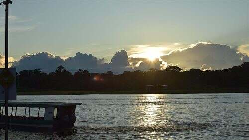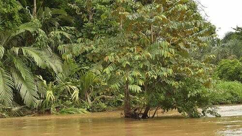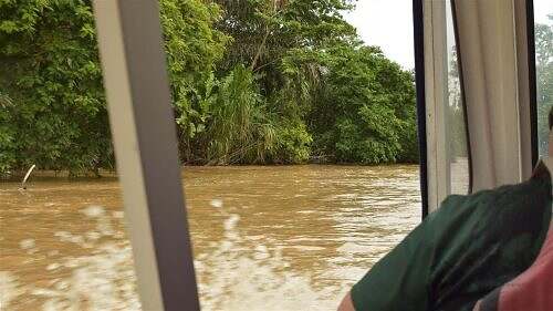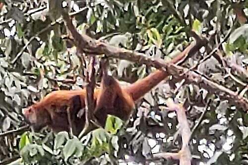 Der Wasserstang isch o entsprächend u ds Wasser geit no mänge Meter i Wald iche. Irgendeinisch g’höre u g’seh me Affe. Brüllaffe u Chlammeraffe si i de Böim am Ufer.