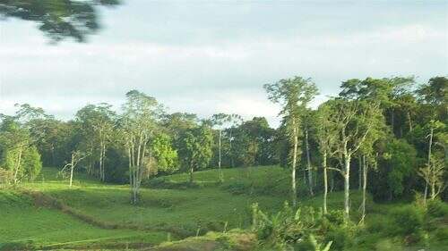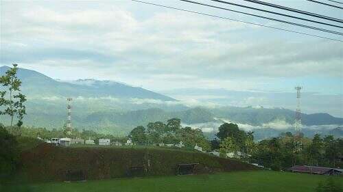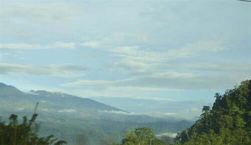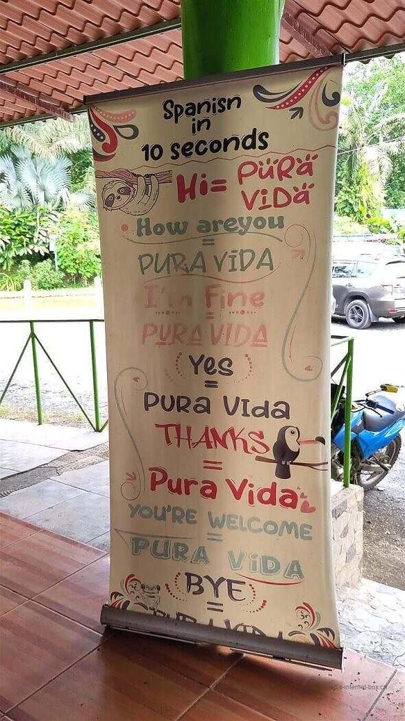 Zersch si mer aber es Zytli mit em Bus ungerwägs. Nid ganz mit läärem Mage faahre mer bis Viertel nach achti. In Guápiles chehre mer i re typische Tourischtebeiz i, un es git es solid’s Büffee. Für mim Mage Guet’s z tue, isse ig nume g’chocheti Sache. 😉