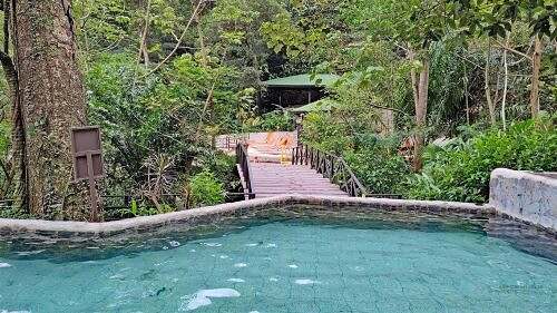 Em zwöi fahre mer uf me Spezialwage hinger eme Traktor zur Therme (oder Schlammbad). Das isch e Fuehr! Der Wäg geit zwänzg Minute dür e Wald u isch g’högerig, we eim der Rügge no nid weh tah het, itz würd er sicher.