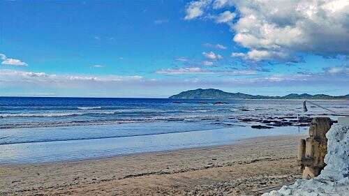 Em halbi zwöi chöme mer in Tamarindo a u checke dert i. Ds Usstige us em Bus schocket eim chley. I ha in Monte Verde Chleider a g’leit, wo passt hei. Hie in Tamarindo isch d Tämperatur so um die 30°C u sehr füecht. I muess dringend Chleyder wächsle.