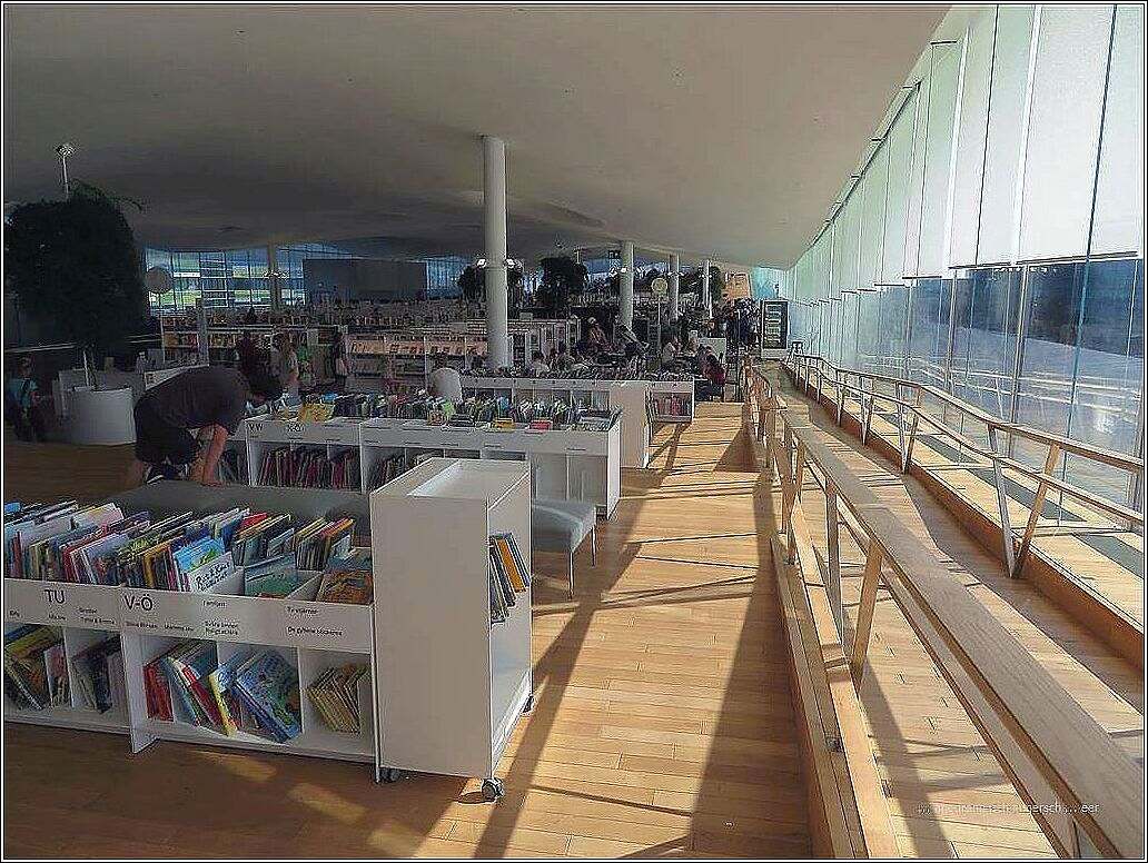 Vo dere Biblothek, vo däm Arbeits-, Begägnigs- u Kunschtort wo ds Läbe vo de Finne ergänzt, ha n i scho viel g’gläse u Filme g’seh. Architektonisch isch das hie e Glanzpunkt u zeigt viel vo däm, wo d Finne usmacht u zfride macht. Ds Innere het vieli Arbeitsmüglechkeite, viel Besprächig’s u Grupperüüm, aber o viel Maschine, Computer, Drucker für Plaket, 3D, Laserplotter, Maschine für textili u techneschi Arbeite, Radiostudio, Videostudio, und und und … I cha gar nid alles ufzelle, was da de Mönsche zur Verfüegig g’stellt wird. (Alli Arbeitsumgäbige si mit eme Fotoverbot beleit.) Dernäbe het es e Bibliothek, wo umfassend Wüsse dokumäntiert, Spielumgäbige für jedi Altersstufe, was me cha usleihe git es hie; – u natürli mehreri Kafi u Reschturant.