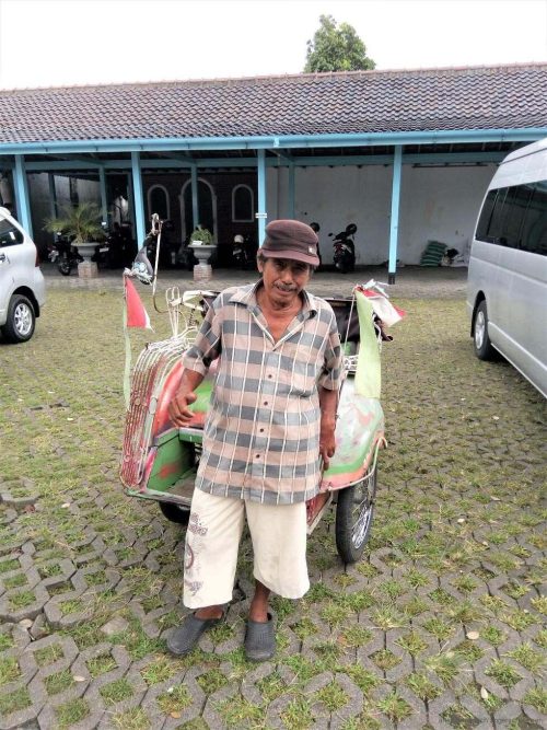 Unser Tag beginnt damit, dass wir unsere Habseligkeiten im Rucksack verstauen müssen. Wir werden noch eine weitere Nacht im Hotel verbringen, aber in anderen Zimmern. Nach einem guten Frühstückkafi nehmen wir den Tag in Angriff. Laut Informationen von Vorgestern soll heute im Sultanspalast ein Event mit Musik und Tanz stattfinden. Wir werden ihn besuchen. Vor der Türe werden wir von Rikschafahrern erwartet, einer bringt uns mit seiner motorisierten Kiste bis zum Palast zu einem moderaten Preis. Wie üblich ist da eine Menge los. Zwar ist heute Sonntag, aber das scheint in Yogyakarta nur einen kleinen Teil der Menschen zu kümmern. Händler en Masse versuchen, ihren Tagesverdienst zu vergrössern. Mit allem und jedem wird gehandelt. Um zehn Uhr soll die Vorstellung beginnen. Gespielt wird im Freien unter einem wunderschönen Zeltdach. Die beginnende Musik könnte indisch oder buddhistisch sein und man braucht manchmal ein gnädiges Ohr um die Dissonanzen zu überbrücken. Die folgenden Tanzdarbietungen sind einfach nur grandios. Die Präzision der Bewegungen, die Synchronität der Tänzer, das bewusst Beiläufige der Formen bringen uns zum Staunen und in eine andere Welt. (Wobei nicht verschwiegen werden soll, dass die Musik und die Temperatur uns auch Morpheus in die Arme schaukelte.) Inzwischen hatten wir Rubio kennengelernt. Er hat eine Rikscha und bringt uns nach den Darbietungen etwas weiter weg vom Zentrum in ein Restaurant. Gedeckte Tische, ein Buffet um sich zu bedienen, für Pierre ein Bier;- was will man mehr. Natürlich kennt auch Rubio, den wir zum ‘z Mittag’ einladen, einen lokalen Batikkünstler, zu dem er uns verschleppt. Das macht er aber mit soviel Charme, dass wir ihm verzeihen. Anschliessend bringt er uns auf seinem motorisierten Kinderwagen wieder ins Zentrum und wir lernen dabei Gegenden kennen, wo wir ohne ihn nie hingelangt wären. Unseren Nachmittag beschliessen wir wieder auf die mittlerweile schon übliche Tour: Magnum und schwarzen Kaffee. Im Hotel beziehen wir unsere neuen Zimmer und lassen den Nachmittag im Pool ausklingen. Na, ist das eine Abenteuerreise, die wir da gebucht haben?