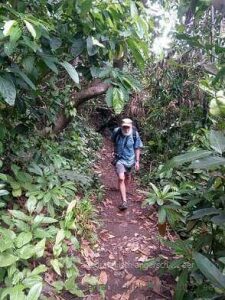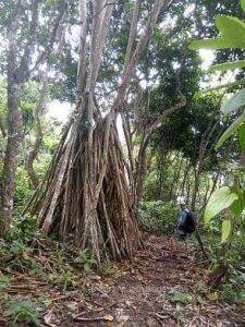 Der heutige Tag beginnt gemächlich. Wir stehen spät auf und Käfelen doppelt. Wir haben bei der Fischalle in Kalibatur Halt gemacht und hier auch toll genächtigt. Mit der Geräuschkulisse der tobenden Brandung schlief sich wunderbar. Beim zweiten Kafi kam die Unterstufe der lokalen Schule und machte Pause rund um und in der Fischhalle. Ein munteres Trüppchen! Um etwa halb zehn machten wir uns zu einer Wanderung auf. Fast zehn Kilometer sind wir quer über eine Landzunge unterwegs um traumhafte Strände zu sehen. Zwischendurch ist der Weg recht gut, wir sind auf gepflästertem Waldpfad unterwegs. Dann ist aber an einzelnen Stellen alles ein Sumpf. Der Wald ist schon lange kein Urwald mehr. Der Mensch behandelt ihn mit der Machete, bis nur noch wächst, was Ertrag bringt. Kochbananen, Zuckerrohr, Mais und dann wird auch Holz geschlagen, Früchte und Kräuter geerntet. Unser Waldpfad ist streckenweise auch eine breite, mit dem Bagger ind den Wald geschlagene Strasse. Wer davon wohl profitiert und wie das in zehn Jahren aussieht? Wir verbringen den Mittag und frühen Nachmittag am Strand und machen uns dann auf den Rückweg. Kalibatur liegt an einem Fluss, den wir schon am Vormittag überqueren mussten, das Bötchen wartete schon. Am Nachmittag war das dann nicht ganz so einfach. Erst nachdem Pierre bei einem erfolglosen Versuch das Wasser zu queren da drin in der braunen Brühe landete, hatte ein Arbeiter ein Einsehen und holte uns ab. Nachdem wir beim Säubern wieder auf menschliche Überreste gestossen sind, machen wir uns auf zum Nachtessen.