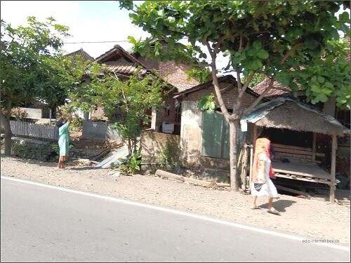 Über Nebenwege fahren wir Richtung Bima und sehen eine ärmere, härtere Realität des Sumbawa – Lebens. Die Behausungen sind einfachst und oft behelfsmässig. In Empang essen wir zu Mittag. Die grossen Portionen, zum Teil mit Nachschlag, inklusive 3 Tee kosten 75000 Rupien, das sind umgerechnet 5 Fr. 25 Rp. – nicht wirklich viel.