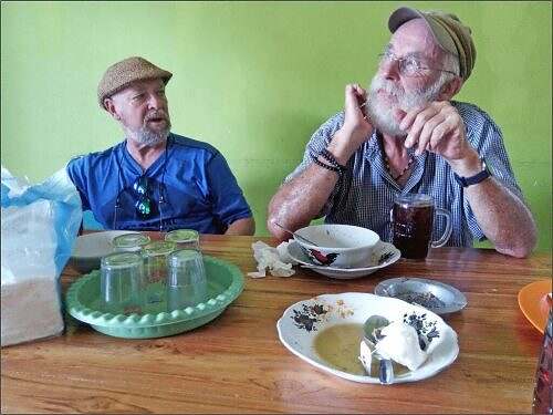 Oft führt er der Küste entlang; – viele Buchten, Gräben, Löcher, Erhebungen und Vertiefungen gestalten die Strecke unterhaltsam. Manchmal ist die Fahrt positiv, manchmal schlägt sie auch etwas aufs Gemüt. Nun, so etwa um sechs kommen wir da an. Einfache, interessierte Leute leben da.