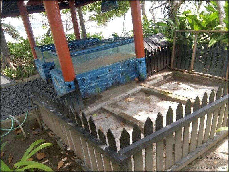 Am Morgen ist Haushaltstour angesagt: putzen, flicken, aufräumen. Am Mittag verabschieden wir uns von unseren Vermietern am Strand. In einem uns bekannten Restaurant, dem Yessy, essen wir. In Senggigi soll es eine Turtle Rettungs- und Auswilderungsstation geben. Diese wollen wir aufsuchen. Die Betonung liegt auf Suchen. Hinter dem Rasen des Sheraton Hotels finden wir dann zwei leere Glaskästen und Sandgruben. Tja, nicht sehenswert, – schade.