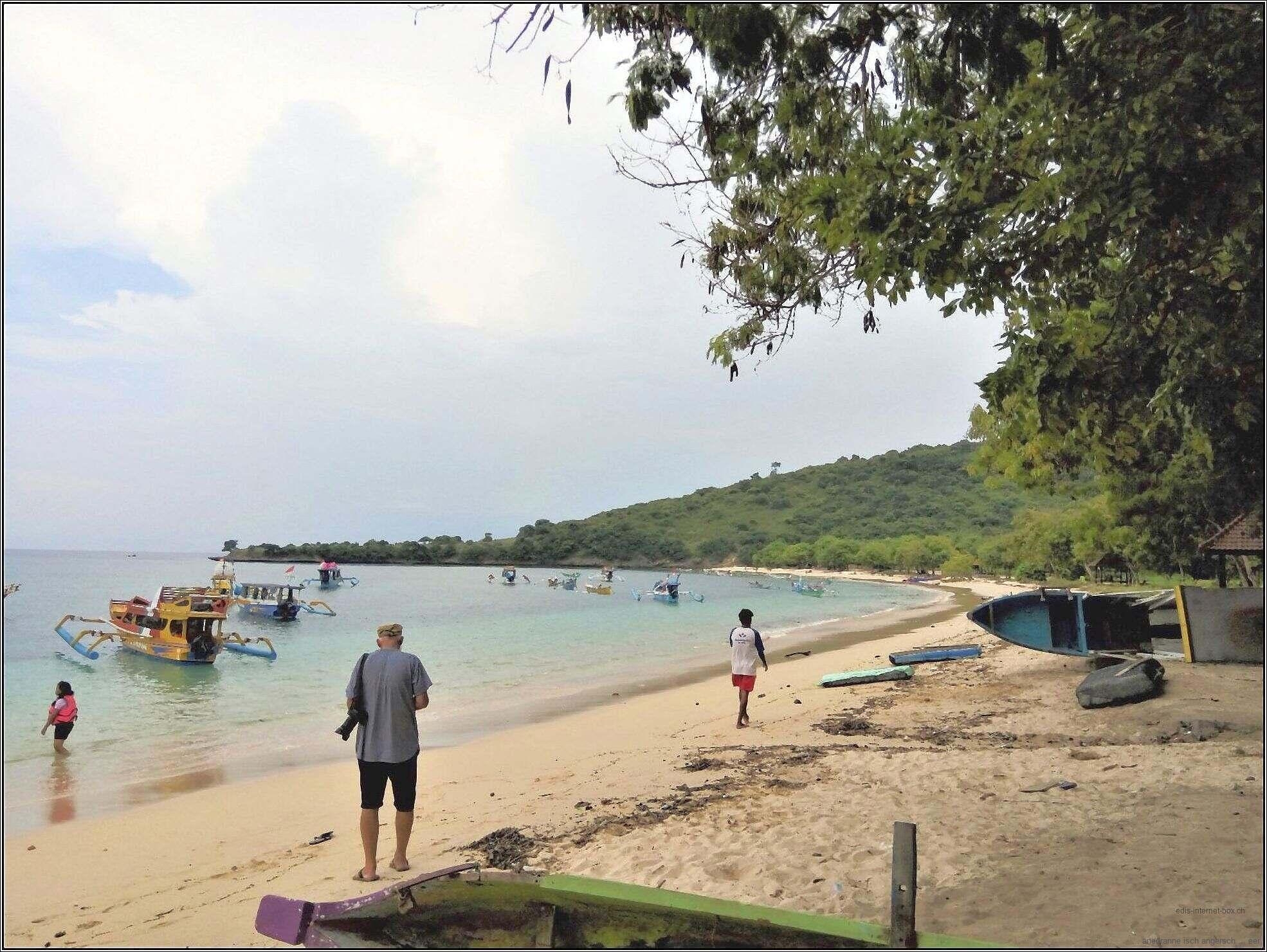 Im Vergleich zu den Touristenorten fällt auf, wie ärmlich in gewissen Gegenden gelebt und gewohnt wird. Zwischendurch gibt es Orte, sehr bäuerlich geprägt, die einen guten Eindruck machen; – dann aber, andernorts ist Armut zu Hause. Zielsicher findet Heinze den Ort, biegt ein und ab und links und rechts, … – wir landen beim Hafen, wo jeweils die Boote, morgens in aller Frühe ihre Fische an Land bringen. Tanjungluar ist der grösste Fischmarkt der Insel. Heinze möchte da morgen früh um fünf Fotos machen gehen. Bei der Suche nach einer Verpflegungsmöglichkeit sind wir weniger erfolgreich. Es gibt einfach fast keine Warung. Wir beschliessen, zum Pink Beach zu fahren, in der Hoffnung, dort am Touristentreff eines zu finden. Der Weg dahin mag mal ausgebaut gewesen sein, inzwischen sieht manches Bachbett schöner aus und wir werden tüchtigst durchgeschüttelt. Zwei Stunden sind wir fast unterwegs, allerdings helfen wir auch noch einem spanischen Touristen samt Mama weiter, der einen Platten an seinem Mietauto hat und sich nicht recht zu helfen weiss. Inzwischen sind wir am pantai tangsi. Gegessen haben wir gut. Es ist ein wunderbarar Ort, mit beeindruckenden Aussichten. Wir knipsen was die Handys halten und beschliessen, hier auch zu übernachten. Heinze hat beschlossen, doch nicht so früh aufzustehen. OK, hoffen wir nur, dass die Gruppe Makaken, die am Nachmittag am Strand war, in der Nacht keinen Blödsinn macht.