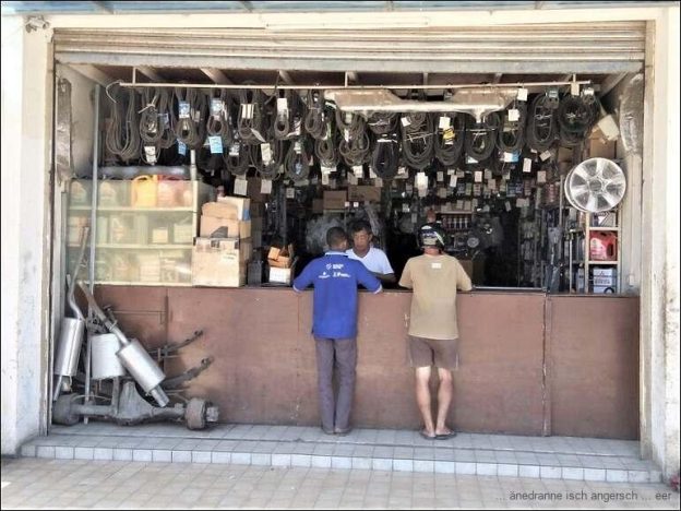 Heinze will nachfragen, ob sie Ersatzteile für die Reparatur des Vierradantriebes hätten. Nach einem Kaffee sprechen wir in der Garage vor. Auf Timor Leste werden viele Land Cruiser gefahren, allerdings staunen wir schon, als einer der Angestellten ein Teil, eine intakte Antriebswelle, daherbringt. Zwar rostig, weil es lange gelagert, aber neu . Ausserdem bekommt Heinze eine Adresse, wo Ersatzteile gehandelt werden und einen Termin Mitte Monat, um später dem Kamel den Bauch zu waschen.