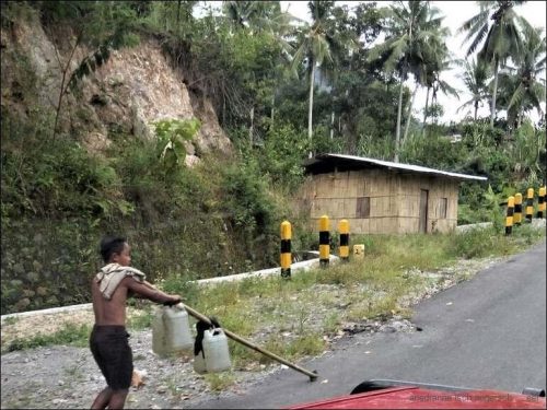 Heute ist ein Autofahrtag durch die Berge. Zwischendurch verläuft unsere Route auf vierzehnhundert Meter über Meer. Über die Trans Flores Strasse fahren wir Richtung der Stadt Ende. Unterwegs in Routeng, einer grösseren Ortschaft, essen wir in einem Warung.