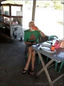Die letzte Nacht am Strand war erholsam, allerdings war das Branden der Wellen auf den Steinen sehr laut. Da es aber gleichmässig erfolgte, wirkte es wie ein Schlaflied. Im Strandwarung war die ganze Nacht Licht , – aber keine Gäste. Heinze hatte was falsches gegessen und litt, Edi schlief fast durch. Am Morgen gehen wir unser Kafi im Warung trinken. Die Betreiberin macht ihn extra für uns. Weitere Gäste hat sie nicht.