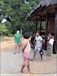 Eigentlich lebt sie normalerweise in Portugal mit ihrer Familie und ist nun seit längerem für Verwaltungsgeschäfte in Timor in ihrem Dorf. Lokale Könige gibt es immer noch, in Regierungsangelegenheiten werden sie aber auch in Timor Leste nicht einbezogen. Auch während der Weiterfahrt finden wir keine Verpflegungsmöglichkeit.