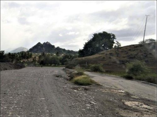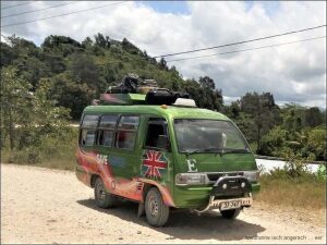 Wenn man Schuldige sucht, sind es die Planer der Strassenerneuerung auf Timor. Der Staat hat zusammen mit China die ganze, heute gefahrene Strecke in Arbeit. Rund 75km Strasse wird runderneuert und ist aufgerissen, mit Schotter versehen, hat Löcher, Gräben, Runsen und ist staubig.
