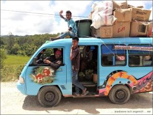 Zeitlose Gallerie der Timoresischen Fortbewegungsmittel: farbig, ramponiert, überladen, geliebt … in technisch kritischem Zustand, aber: er fährt!
