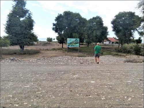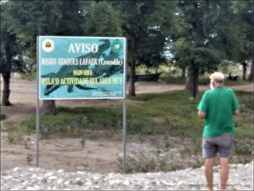 Um halb neun kommt ein Motorradfahrer auf die Wiese und es stellt sich heraus, dass er der Landbesitzer ist. Als wir gestern auf der Wiese hielten, gab uns zwar ein Anwohner das OK zum Übernachten, aber vielleicht hat er uns auch nicht so recht verstanden. Die Kinder der Anwohner verhielten sich auch recht eigenartig. Auf die Frage nach einem Foto waren sie zwar einverstanden damit, rannten dann aber panisch weg, wenn Heinze den Fotoaparat zückte. Unser Landbesitzer erkundigte sich, was wir wollen, machen, tun und lassen, – war dann zufrieden und wollte ein Foto mit uns. Was ja in ganz Indonesien und nun auch in Timor zu den Highlights zählt ist ein Foto mit einem Weissen ?? Nun, zufrieden mit dem Ergebnis fuhr er mit dem Motorrad davon und wir setzten unseren Weg fort.